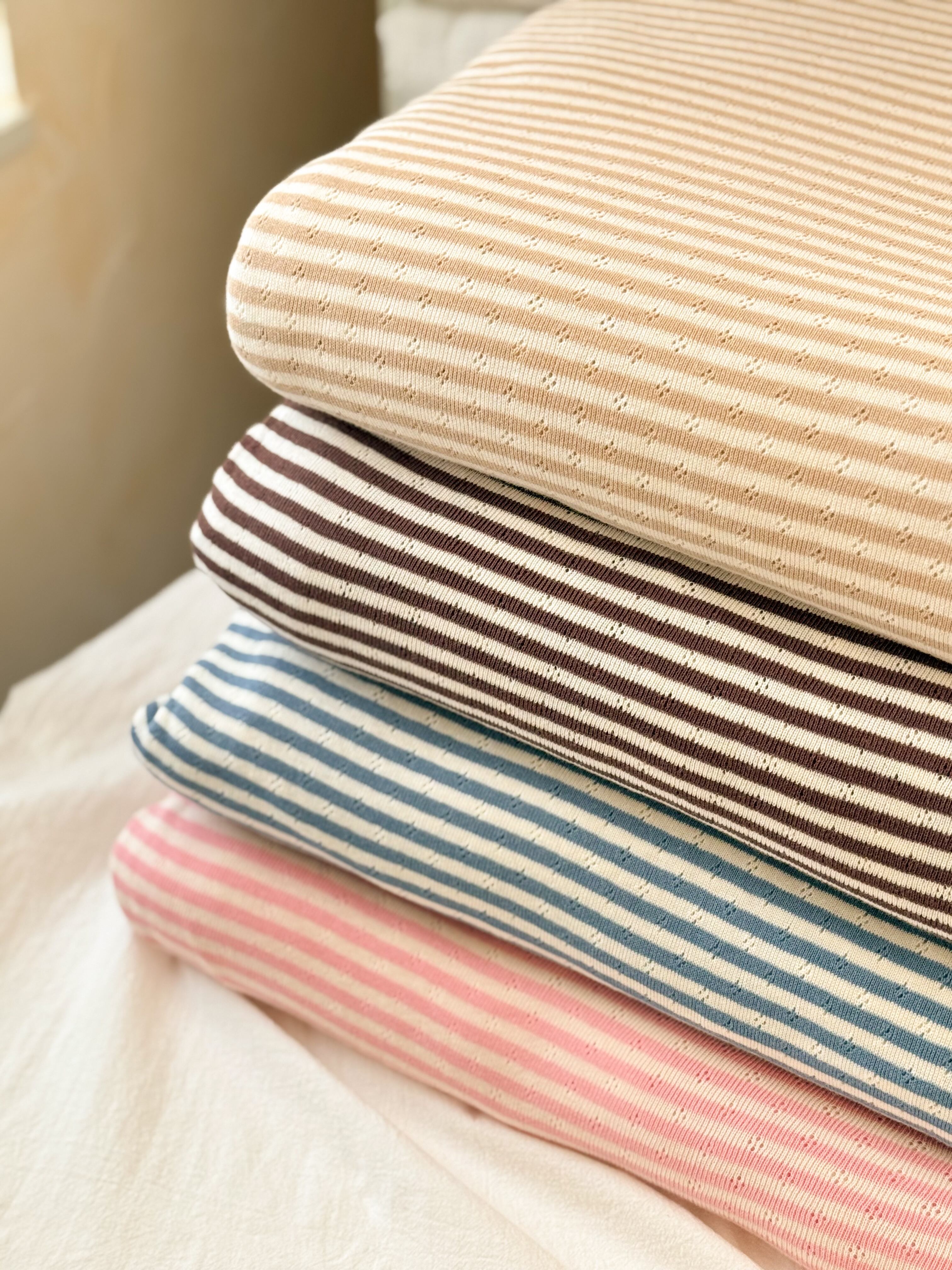 即納商品ですが、 新作発売日、SALE期間中はご注文殺到が予想されるため出荷までお日にちをいただいております。 【当店休業日(土日、祝日)】 ボーダー好きにはたまらない♡ 絶妙な色合いがおしゃれなアイレットニットです。 baby服やkids服、犬服におすすめです。 とってもオシャレに仕上がると思います♩ よく伸びるので、着心地も良さそうです◎ コットン100% サラッと柔らかな手触りです。 春夏、秋口までお使いいただけそうな生地感です。 ✂︎ 1y以上ご注文の場合、続けてカットいたします。 ◯0.5yd単位での販売です。 数量1=45cmでお届けします。 (例 数量2=90cm) ※長尺でご注文いただいた際、在庫の関係で不良箇所が避けきれない場合がございます。不良箇所分を考慮し、長めに裁断して送付させていただきますのでご了承ください。(その場合は、お手紙を同封させていただいております。) ※ 商品合計 ¥9200以上のご購入で送料無料になります。 商用利用可能 ☑︎幅. 約121cm程度〜127cm程度 ☑︎素材 コットン100% ☑︎透け感 光に当たると、少しあるかも? ☑︎伸縮性 よく伸びる ☑︎厚み 普通 ⚪︎お使いのモニターによって、画像と実物の色味やイメージに差異がある場合がございますが、ご了承いただいた上でのご注文をお願いいたします。 ⚪︎コットン素材にみられる「黒い点」は生産の過程で、綿の葉・茎・実などの枯れた部分が細かくくだけて残ったもので、全く無害ですのでご安心ください。 ⚪︎海外輸入品となっておりますので、 小さな汚れや傷、糸のほつれ、刺繍の乱れがある場合がございますが、正規品として販売させていただいております。ご了承ください。 ⚪︎裁断の際に1-2cmの予備をもたせて裁断しておりますが、裁断後に少し縮みが生じる場合がございます。(特にニット製品はその特性上縮みやすくなっております。) ⚪︎折りたたんでの発送となりますので、折りジワにより伸ばした際に縮んでしまうことがございます。大幅な不足でない場合は交換等はお受け出来ませんので、予めご了承ください。 【注意事項】 ご注文いただく前に必ずお読みください。 https://pomulfabric.official.ec/p/00001