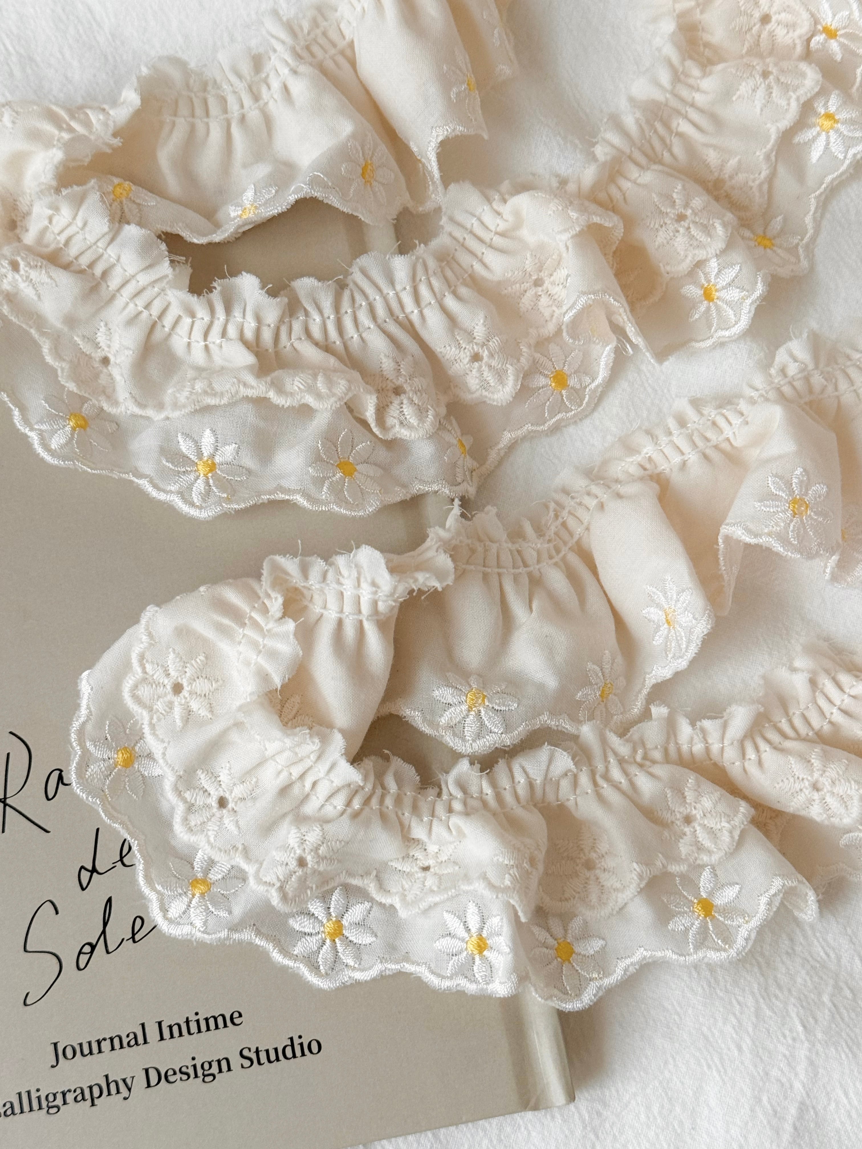 flower刺繍のレースが2段重ねてあるW frill laceになります。