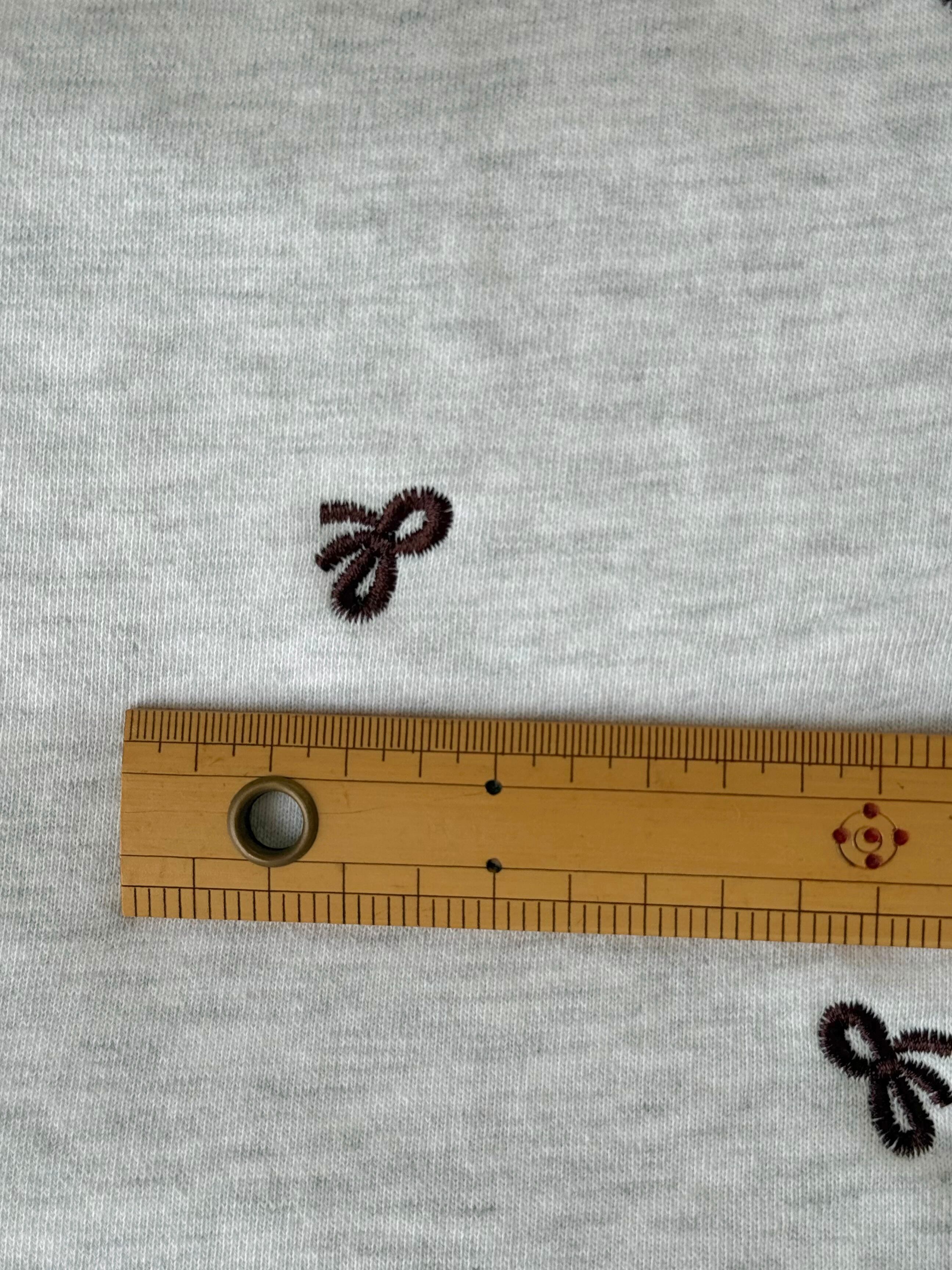 ダークブラウンカラーの大人かわいいリボン刺繍裏毛スウェット生地です。